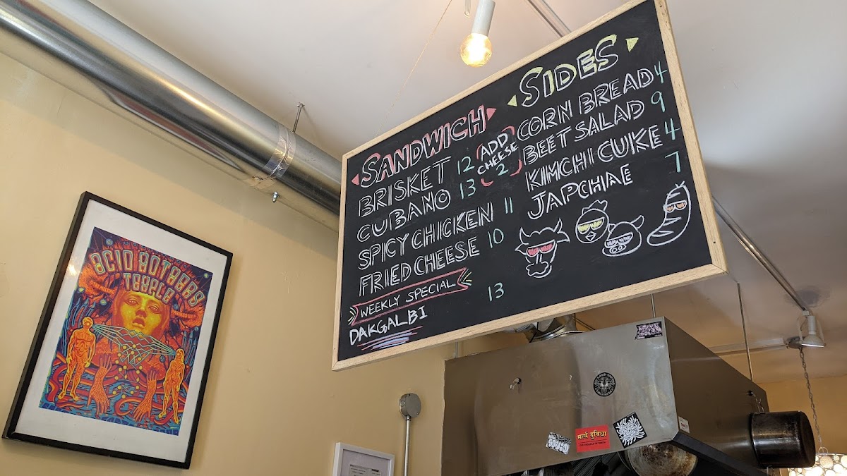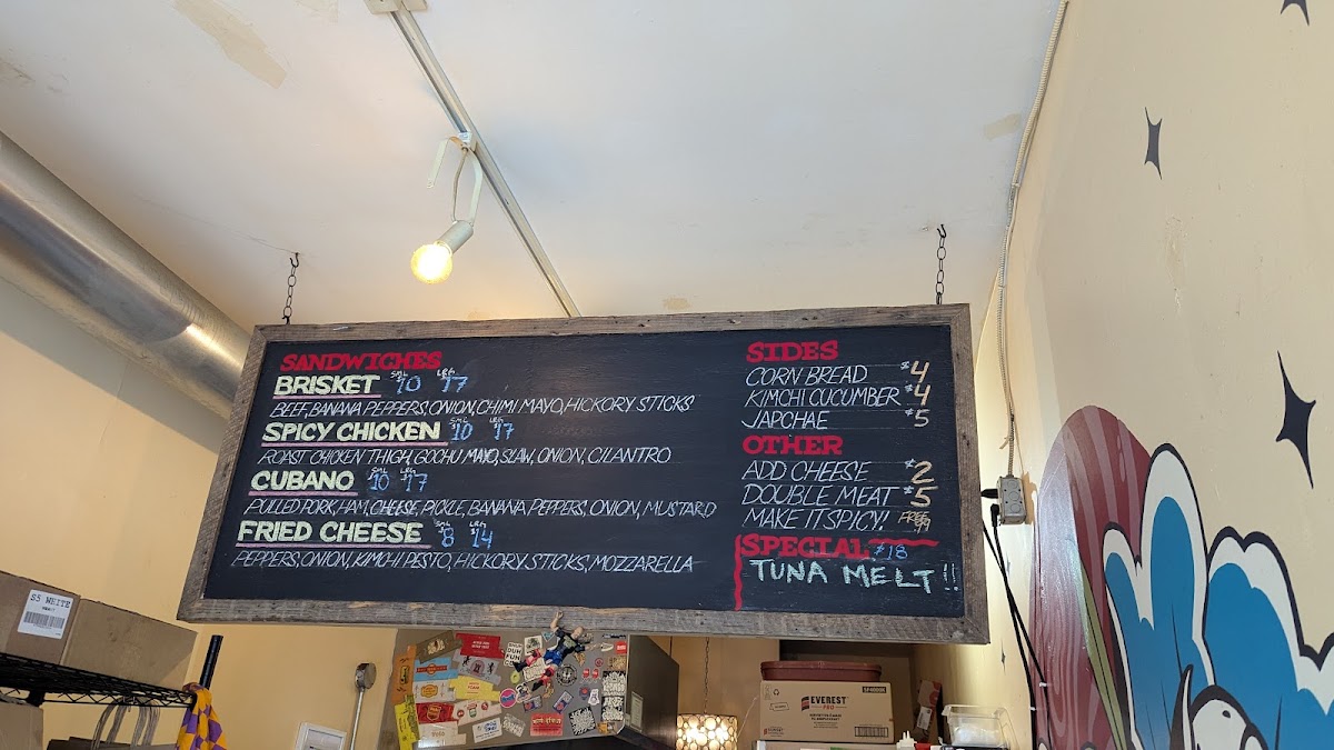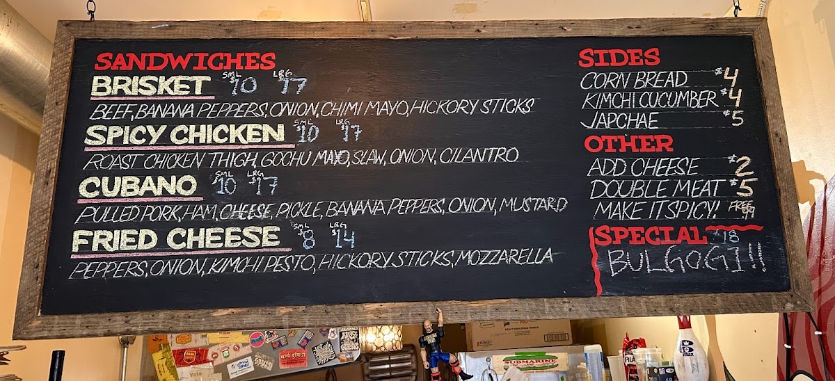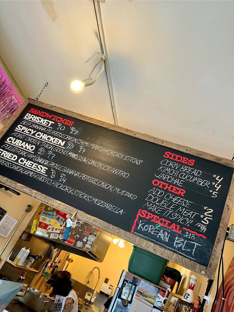 The menu also includes the delicious Cubano, loaded with roasted pork and black forest ham, making it a must-try. Pair your meal with their house-made buttermilk corn bread or the spicy kimchi cucumbers that have customers raving.
